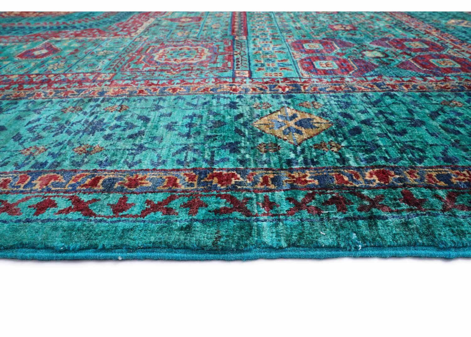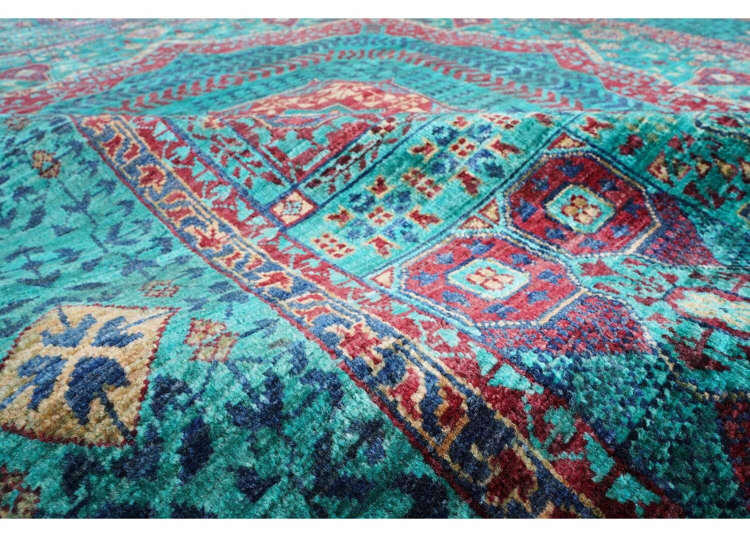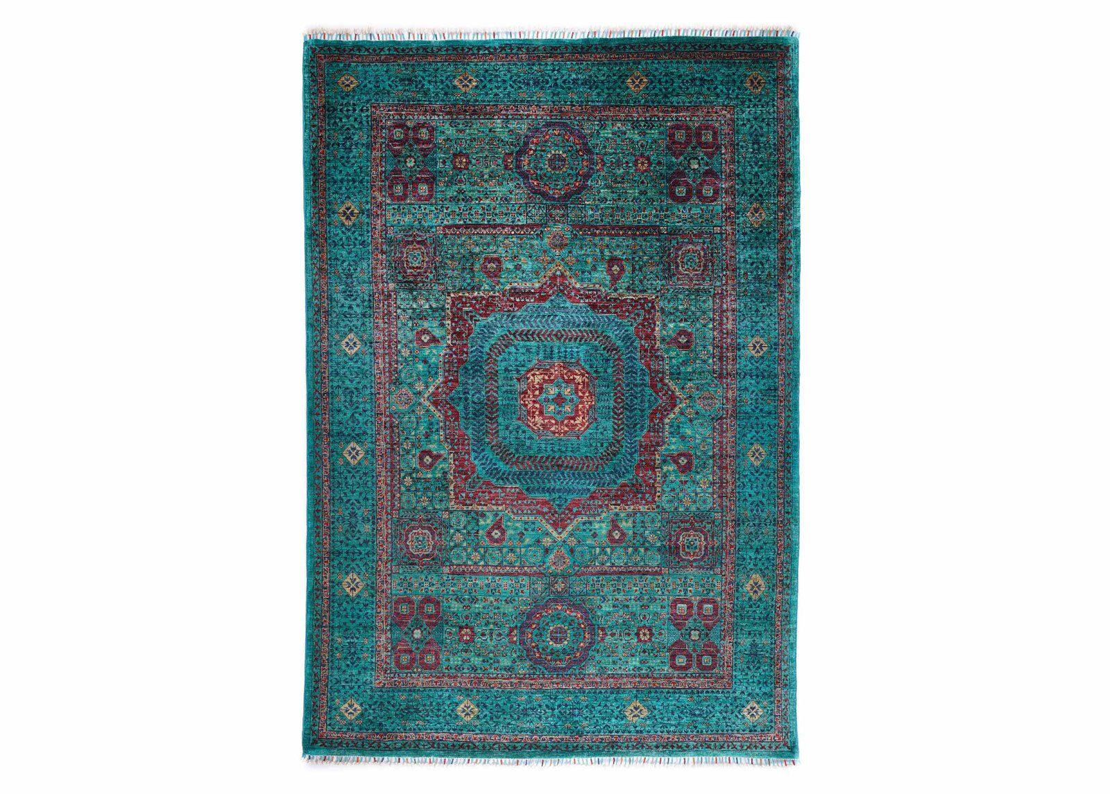 This Exclusive Green Area Rug showcases a classic Mamluk design that blends tradition with elegance. Crafted from 100% natural wool, its hand-knotted structure ensures durability and a timeless charm. The rich green shades, accented with intricate geometric patterns, elevate any space, making it ideal for living rooms or bedrooms.