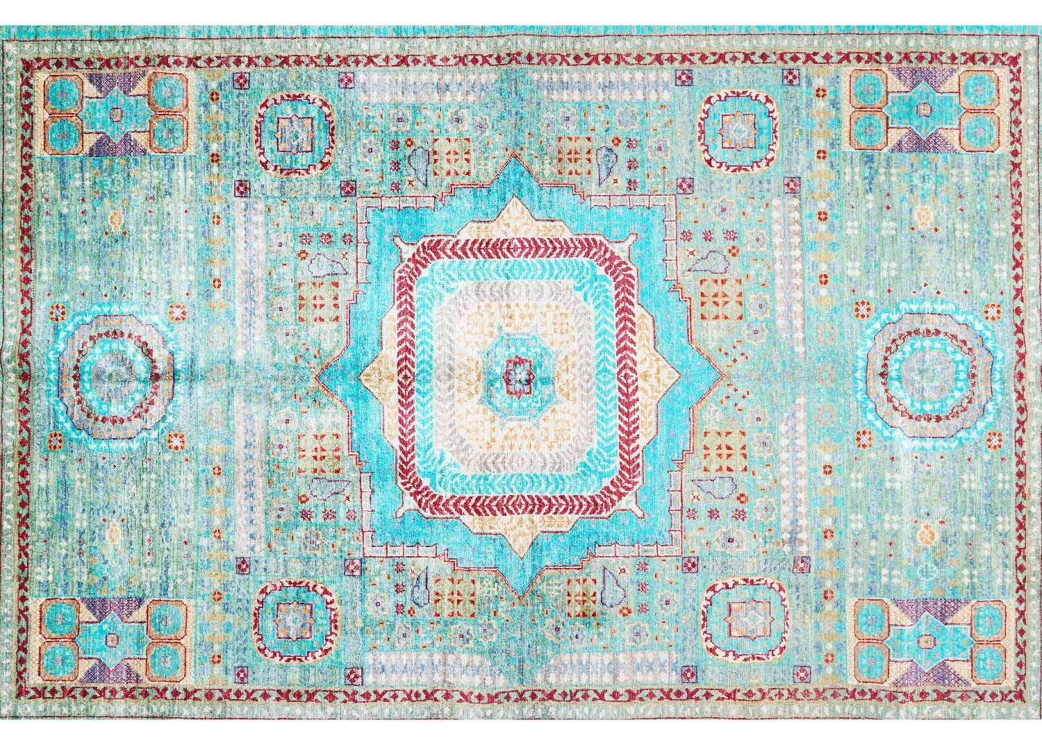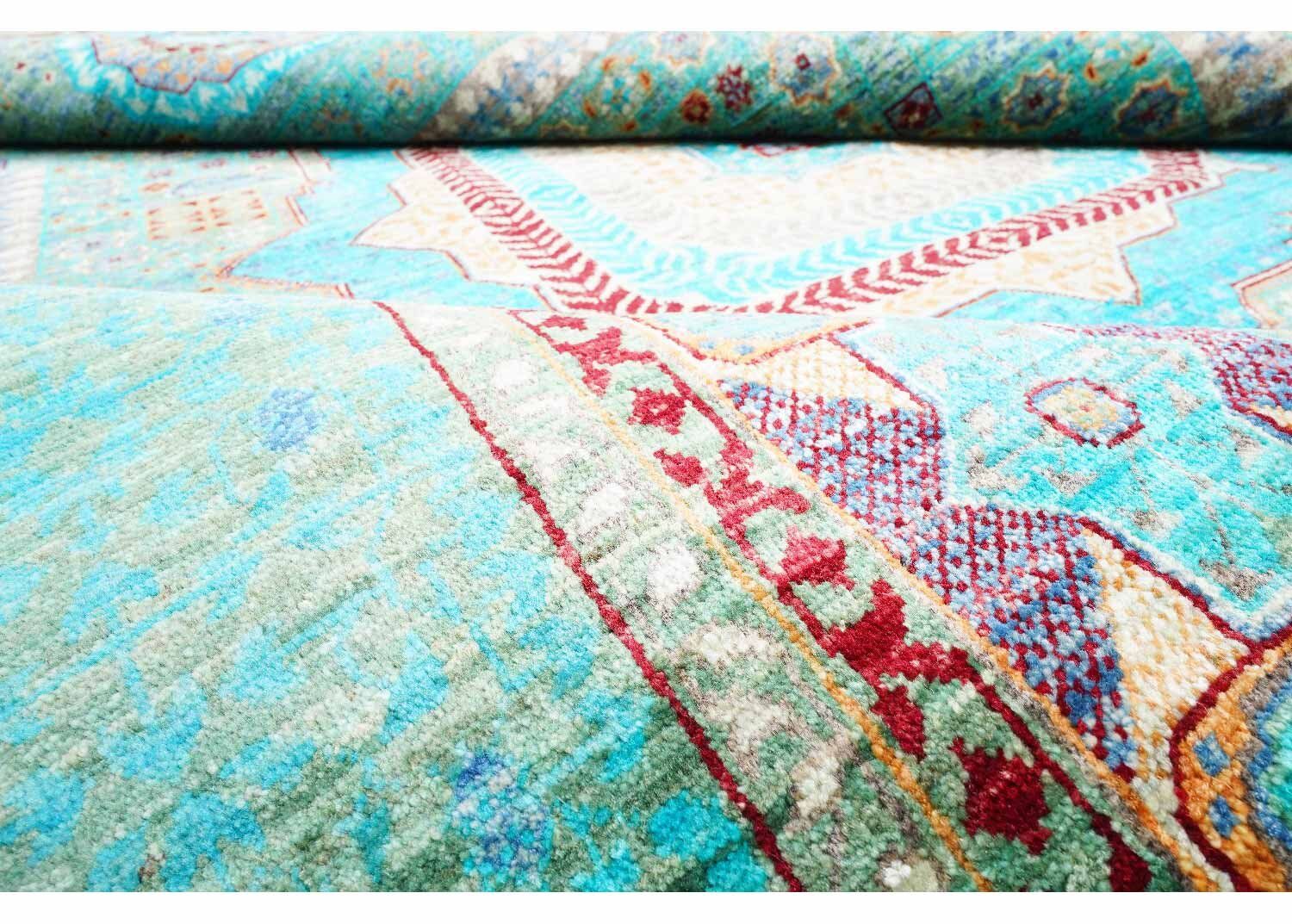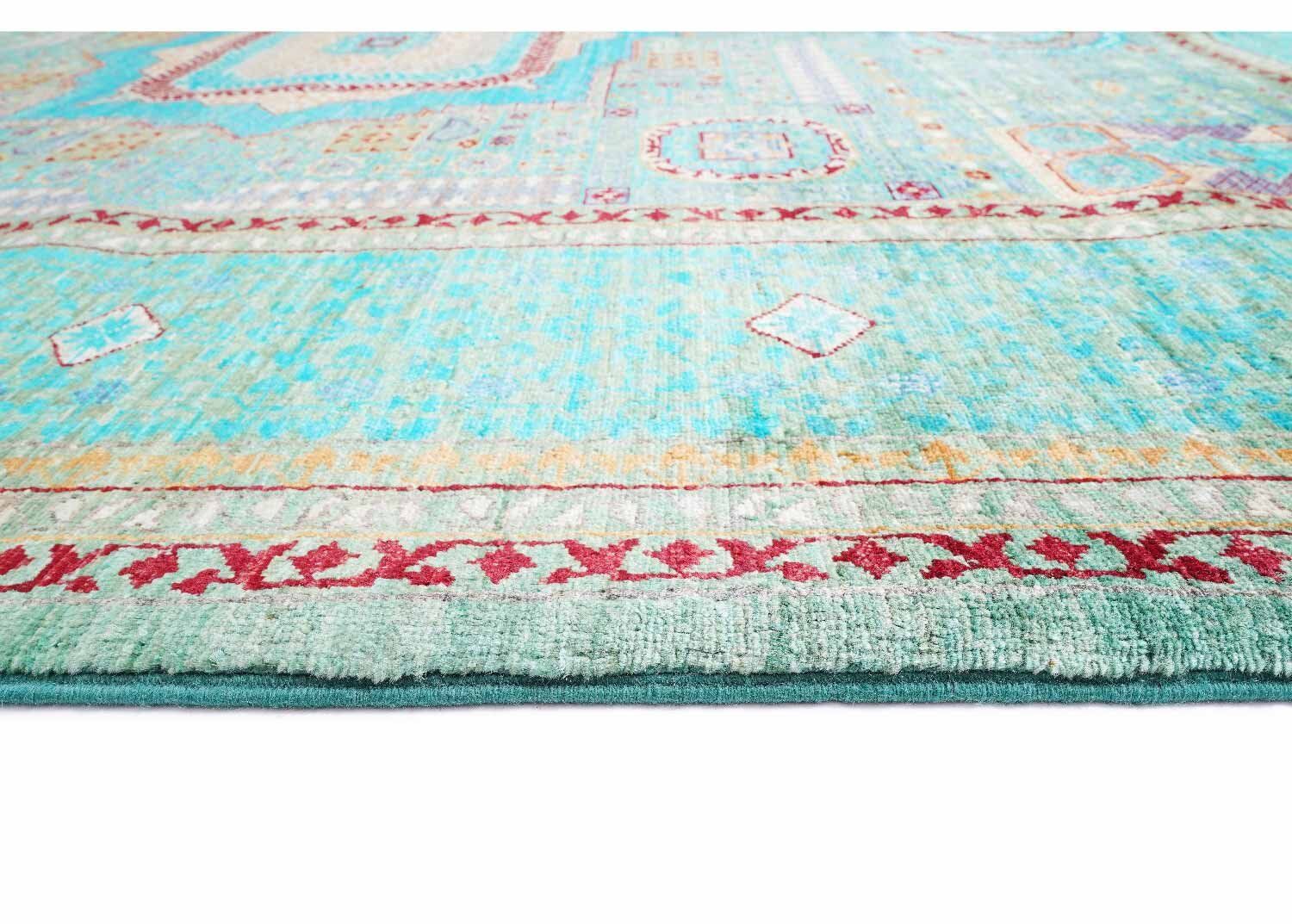 Elevate your space with the Handknotted Memluk Traditional Rug in Green and Blue Geometric Pattern, measuring 8.1×5.7 ft. This exquisite rug blends timeless design with vibrant colors. Handcrafted with precision, it showcases intricate geometric patterns that add a touch of elegance to any room. The wool material ensures durability and softness, while the handknotted craftsmanship provides a unique, artisanal quality.