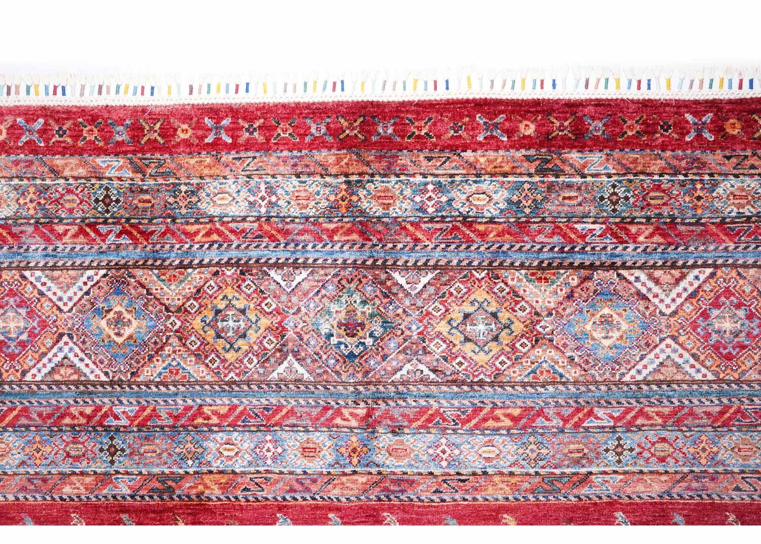 This handknotted, red and orange traditional rug is the perfect addition to any room. Measuring 7.8×5.8 ft, it creates an inviting atmosphere with its vibrant blend of red and orange tones. The wool material ensures durability and softness, while the Turkish craftsmanship adds a timeless touch. This rug is ideal for living rooms, bedrooms, or any space where you want a traditional feel.