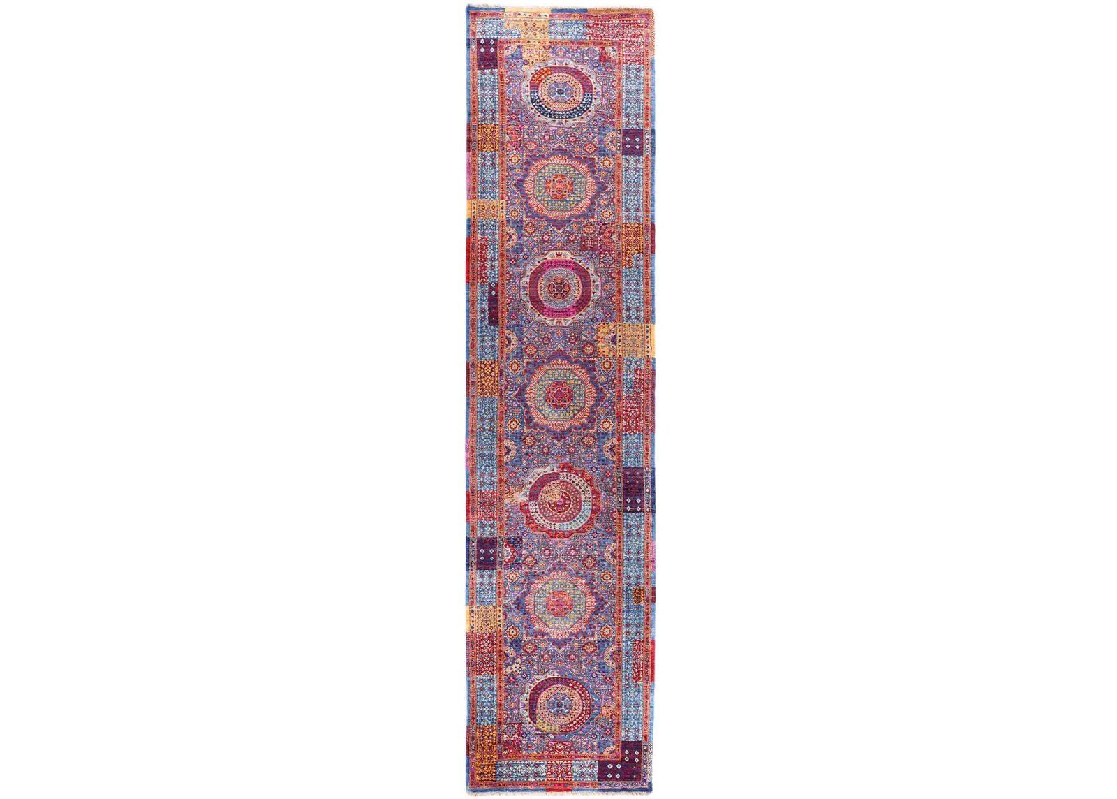 Each rug is meticulously hand-knotted, ensuring unmatched quality and durability. The luxury Memluk design offers intricate patterns and rich colors that enhance any decor. This runner rug, measuring 11.5×2.7 ft, is ideal for hallways or long corridors.