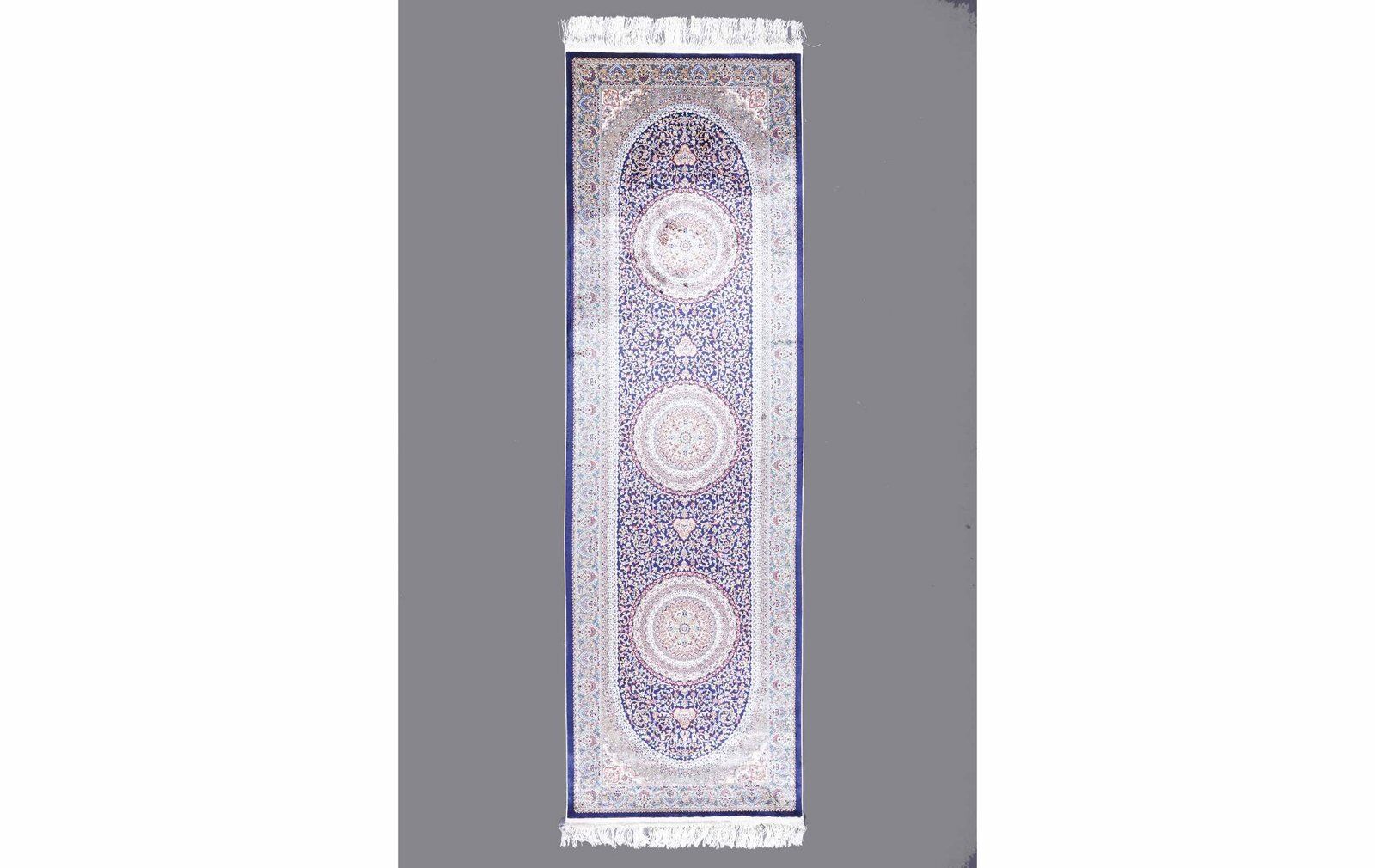Indulge your space with the elegant Machine Made with Silk Blue-Grey Oriental 8 x 2 Runner Medallion from Rug Turkey. This stunning runner enhances any room with its intricate medallion design and beautiful blue-grey color scheme. The soft silk material provides a luxurious feel while ensuring durability. Perfect for high-traffic areas, this runner is ideal for living rooms or hallways.