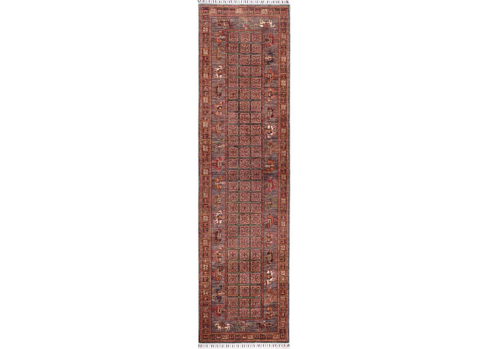 The Pazyryk Rustic Animal Print Runner Hand-knotted 10×2.7 ft is a masterpiece of traditional craftsmanship. Its intricate animal print design adds a touch of rustic elegance to any space. The rug is meticulously hand-knotted, ensuring durability and uniqueness in every piece.