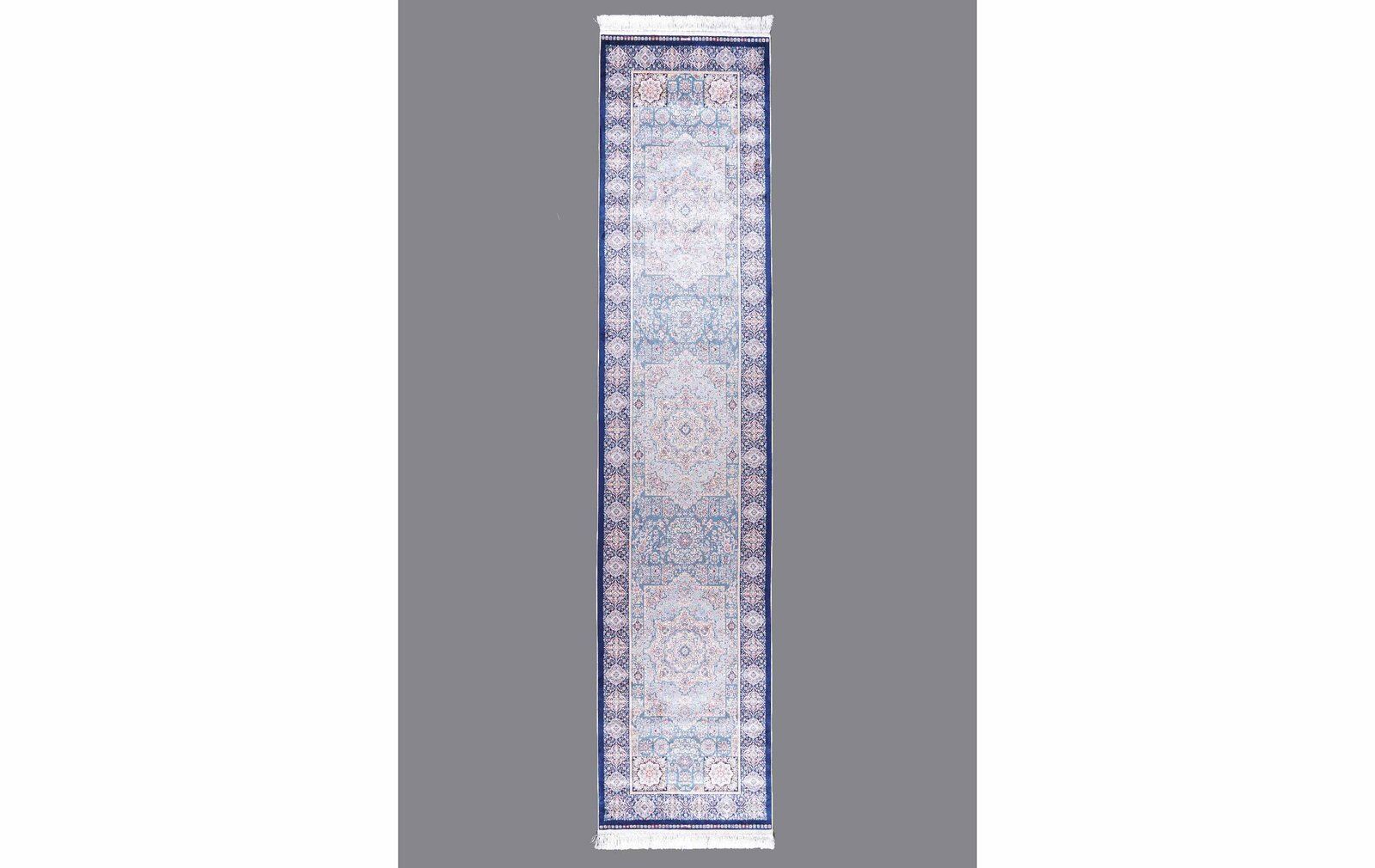 Enhance your home with the Premium Silk Medallion Blue Carpet Runner 11×2.6 ft Machine-Made by Rug Turkey. This runner boasts a luxurious medallion design that adds elegance to hallways and entryways. The rich blue tones, complemented by subtle copper accents, create a regal atmosphere. Crafted with premium silk, it offers both durability and a soft texture underfoot.