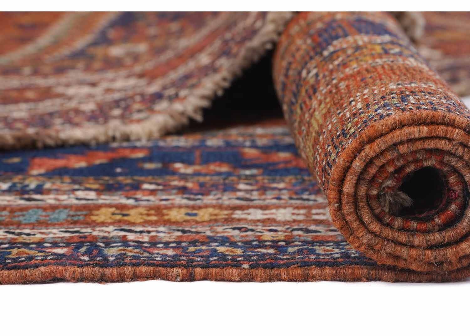 The Shiraz Hand-Knotted Area Carpet 6×5 ft Traditional Brown Living Room Rugs by Rug Turkey brings warmth and elegance to your living space. Crafted with expert precision, this traditional carpet features a brown-blue color scheme, making it versatile for various decor styles. Its hand-knotted construction ensures durability, while the premium wool material adds softness underfoot. Perfect for living rooms, this 6×5 ft rug enhances your home with a touch of Persian tradition. The intricate design reflects the heritage of Shiraz, Iran, offering a unique piece of art for your floor.