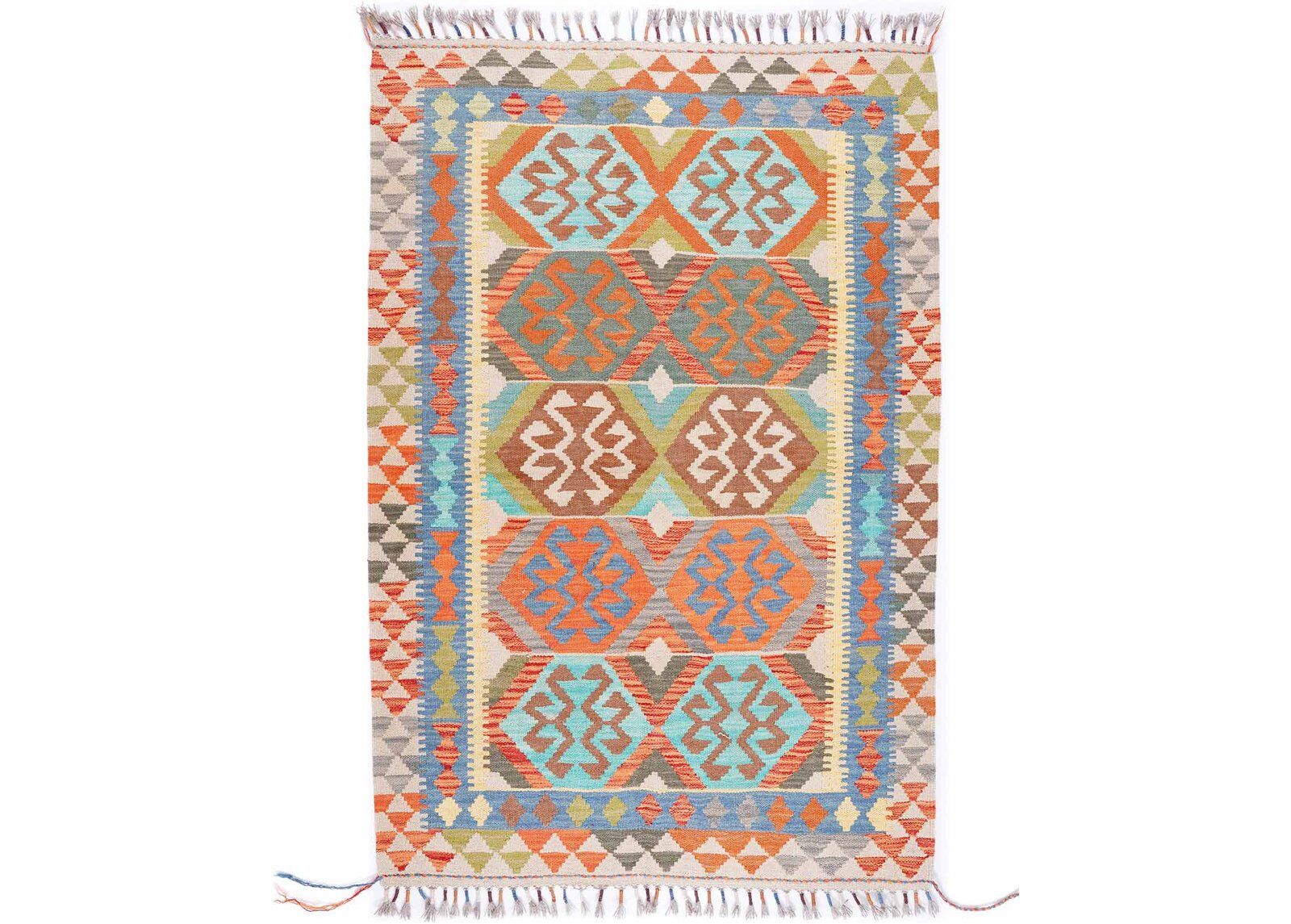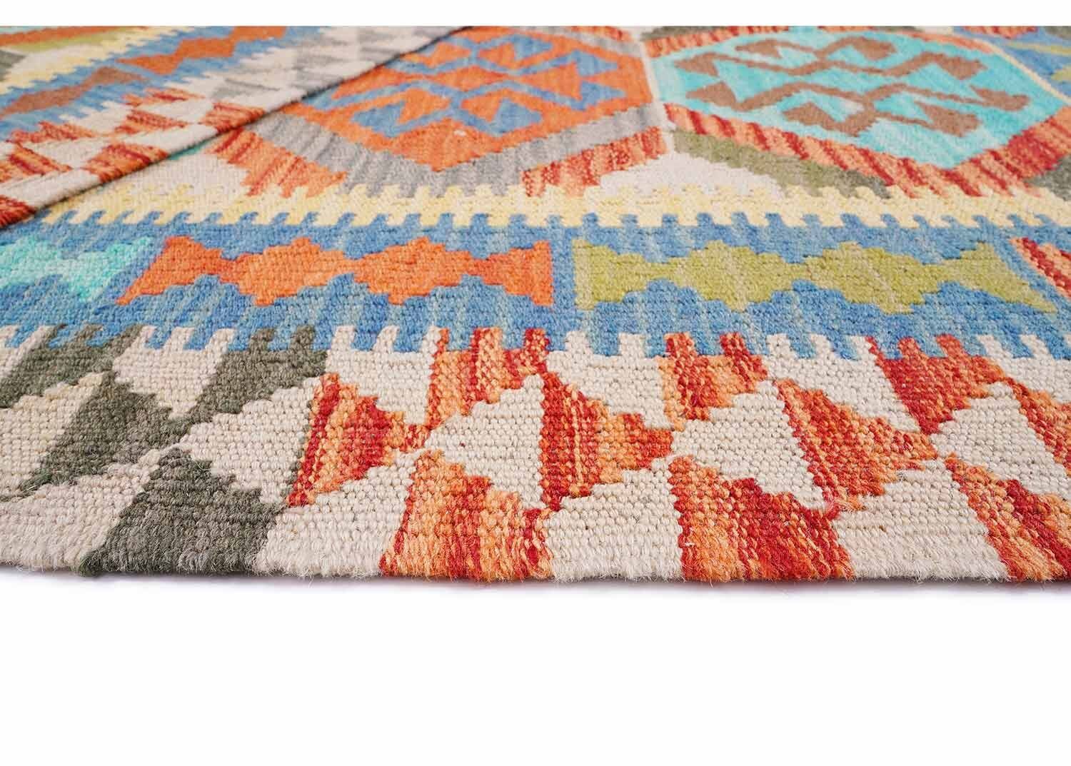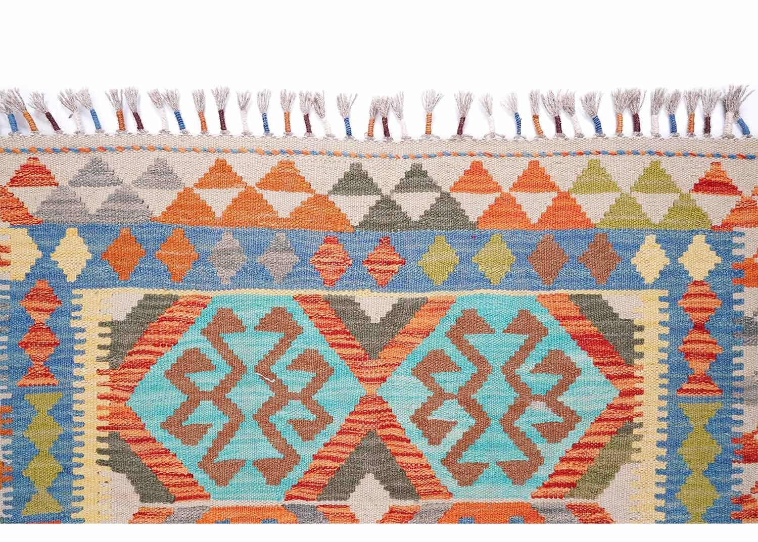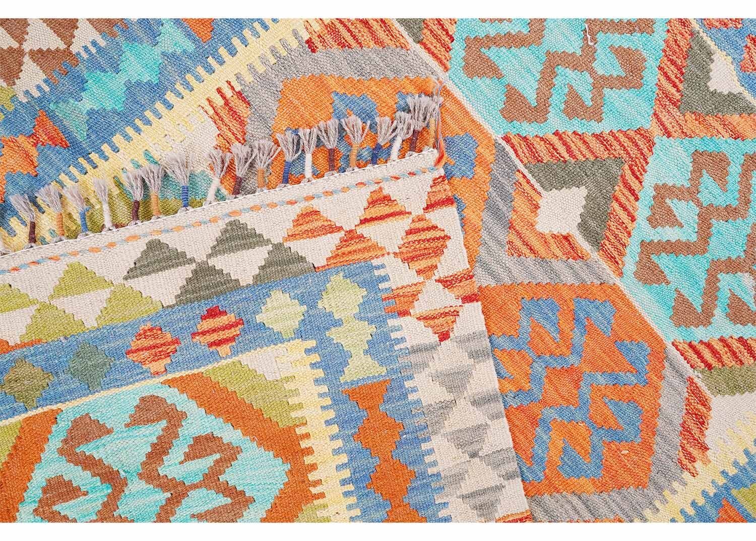 Stunning Orange & Blue Wool Rug Handwoven 4.8×3 ft Kilim
