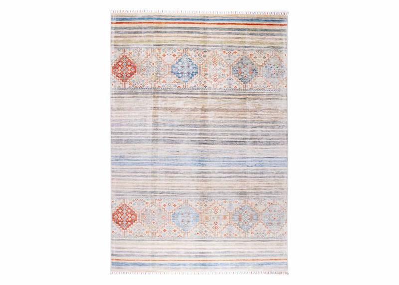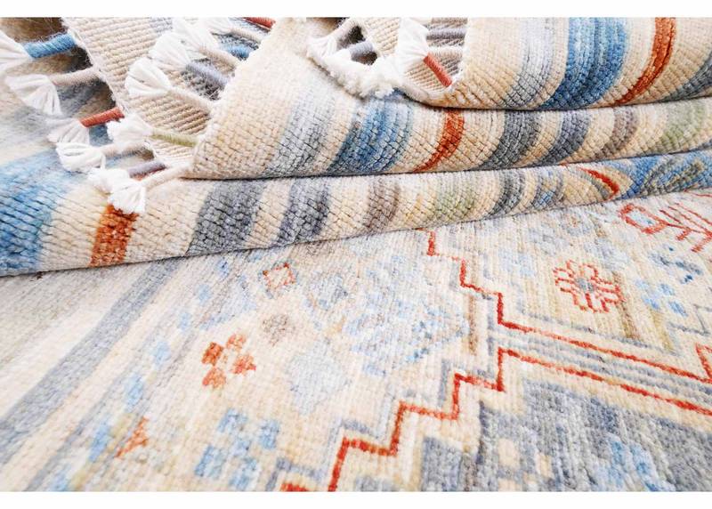 The Traditional Horcun Wool Cotton Area Rug – Striped Pattern 7.9×5.5 ft is a beautiful addition to any home. It features an elegant striped design, blending earthy tones with vibrant colors. Crafted from a premium wool and cotton blend, this rug offers both durability and comfort underfoot.