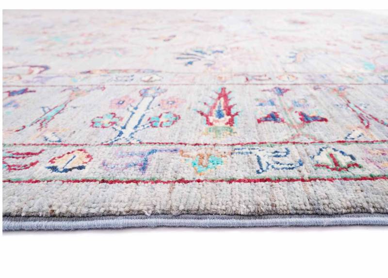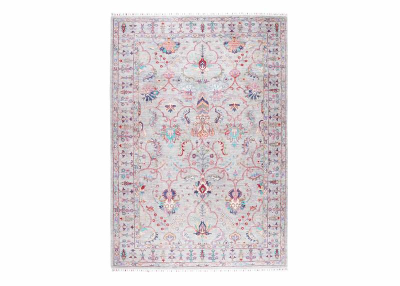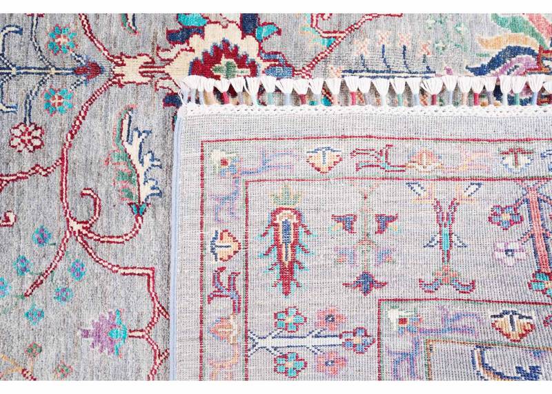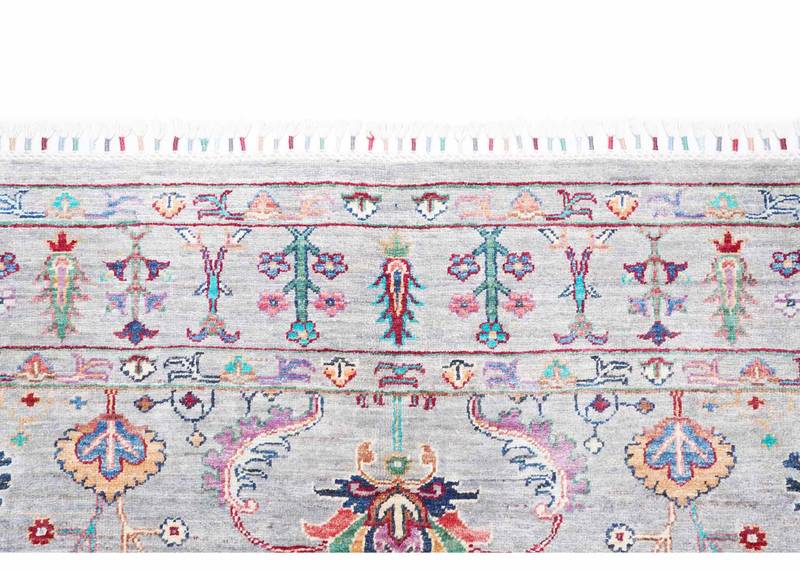The Traditional Sultani Oriental Rug in grey adds timeless elegance to any room. This handknotted authentic rug, sized at 8×5.8 ft, is crafted with high-quality wool, showcasing intricate traditional designs. Its neutral grey color scheme makes it versatile and suitable for various interior styles.
