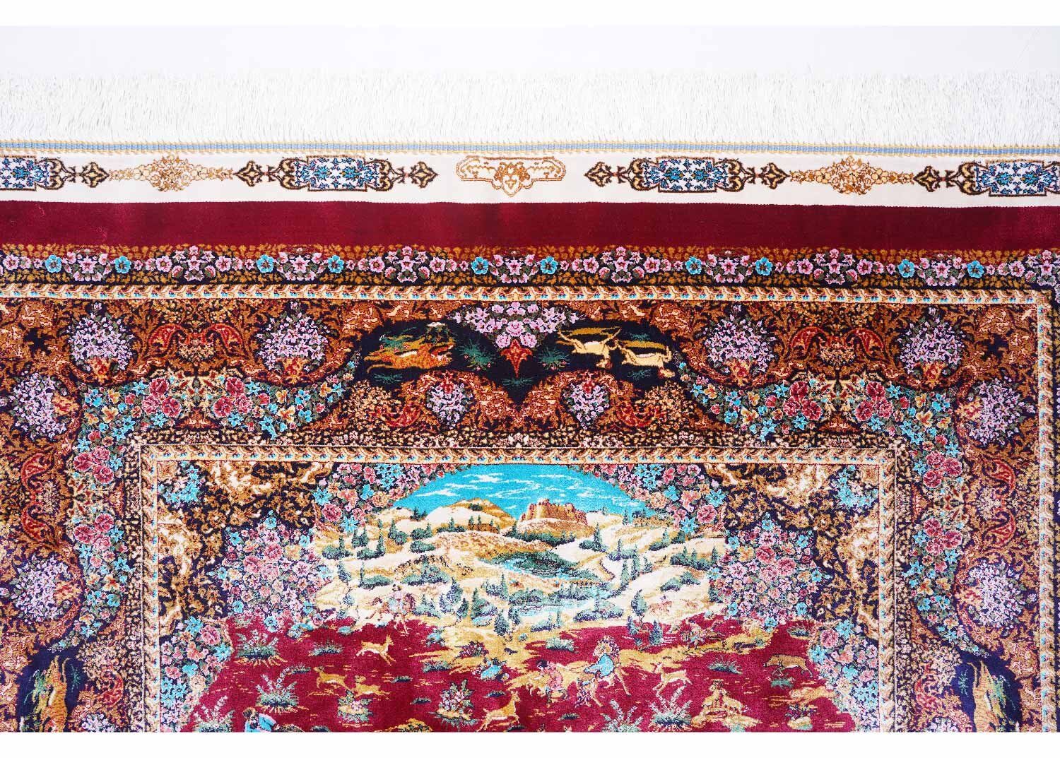 The Tugra Red Animal Print Rug is a luxurious 3×5 ft piece, crafted from premium bamboo-silk. Its bold red color, combined with intricate animal print, brings elegance and a modern vibe to any room. This machine-made rug from Rug Turkey ensures durability while maintaining a soft touch. The use of bamboo silk offers a unique texture, adding sophistication to your décor.