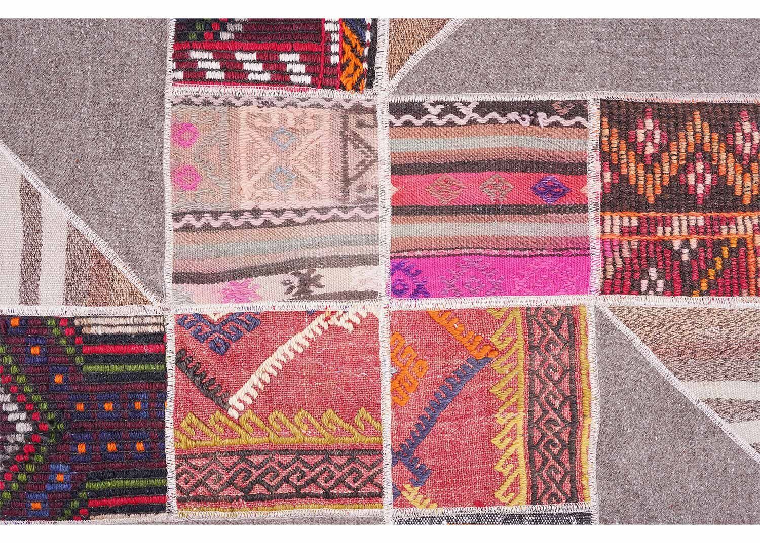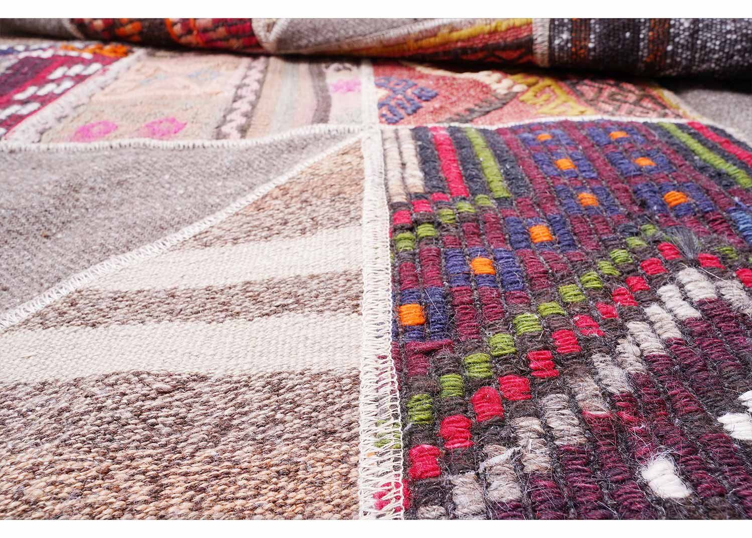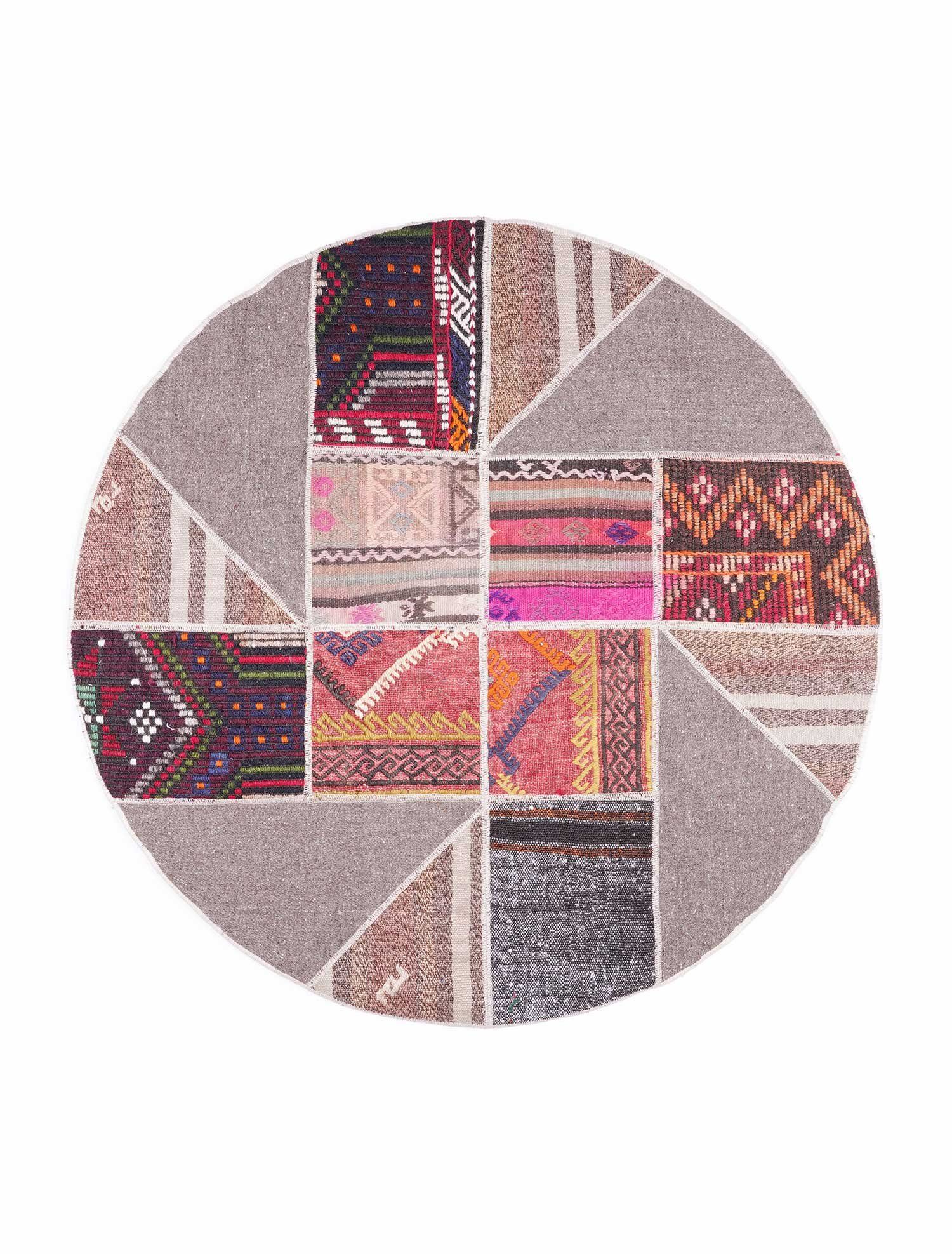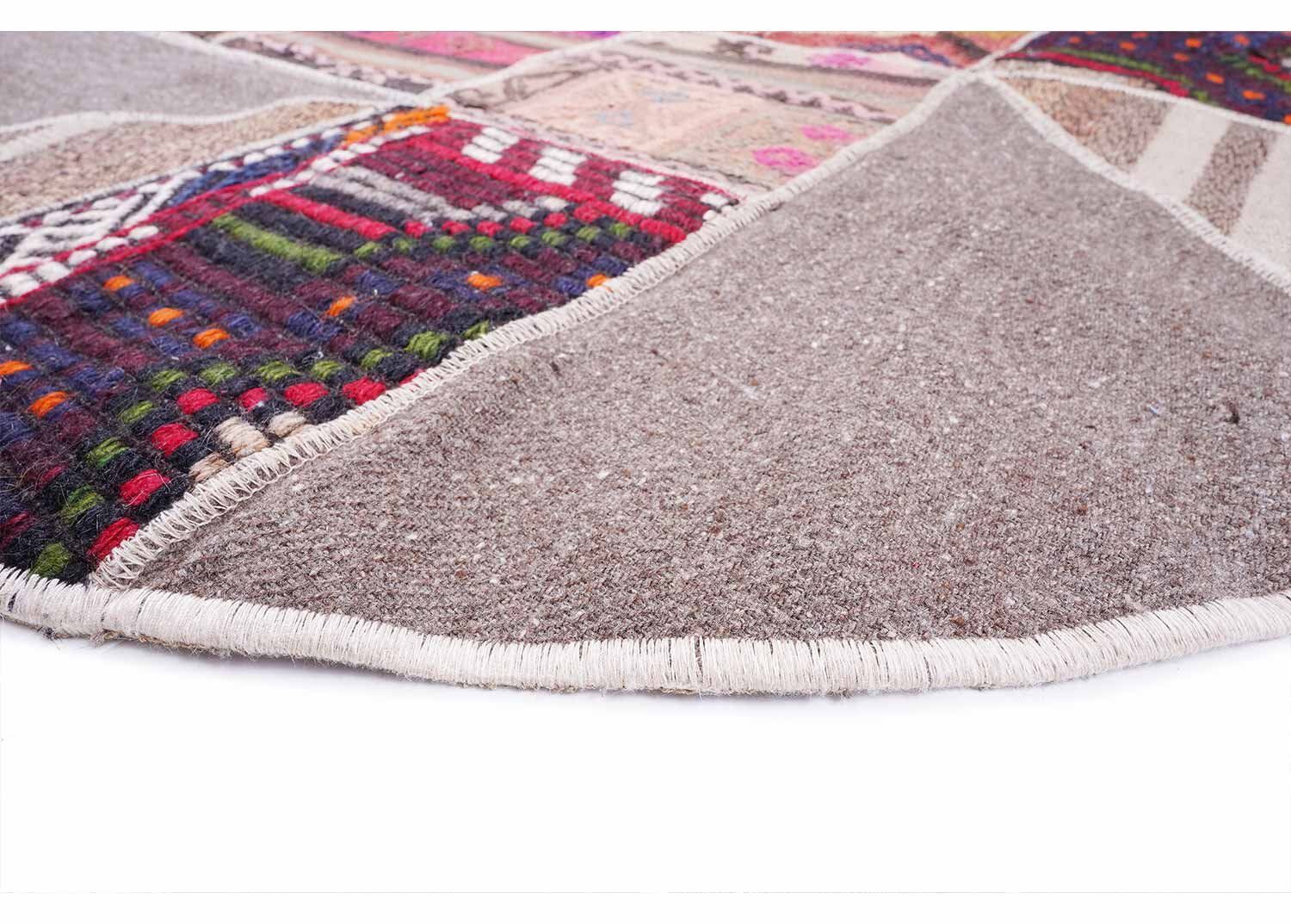The Turkish Patchwork Kilim Carpet Handwoven Circle Rugs 4×4 ft by Rug Turkey is a vibrant addition to any space. Its unique circular design, featuring a patchwork of vibrant colors, effortlessly enhances the aesthetic of your home. Handwoven with care, this rug is made from 100% wool, ensuring both durability and comfort.