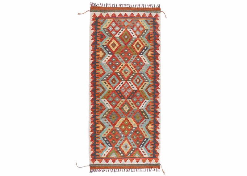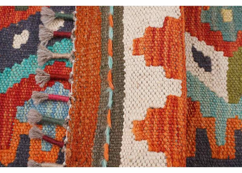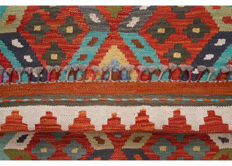 The Wool and Wool Geometric Pattern 6×3 Entry Rug Handwoven Kilim offers a perfect blend of style and durability. Handwoven from high-quality wool, it enhances any entryway with its vibrant geometric design.